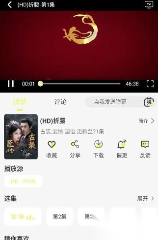 2、任意选择一部剧集开始播放,例如《折腰》。