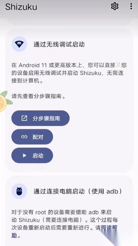 (2)Shizuku(需要连接电脑)。这个过程每次设备重新启动后需要重新进行。请阅读帮助。