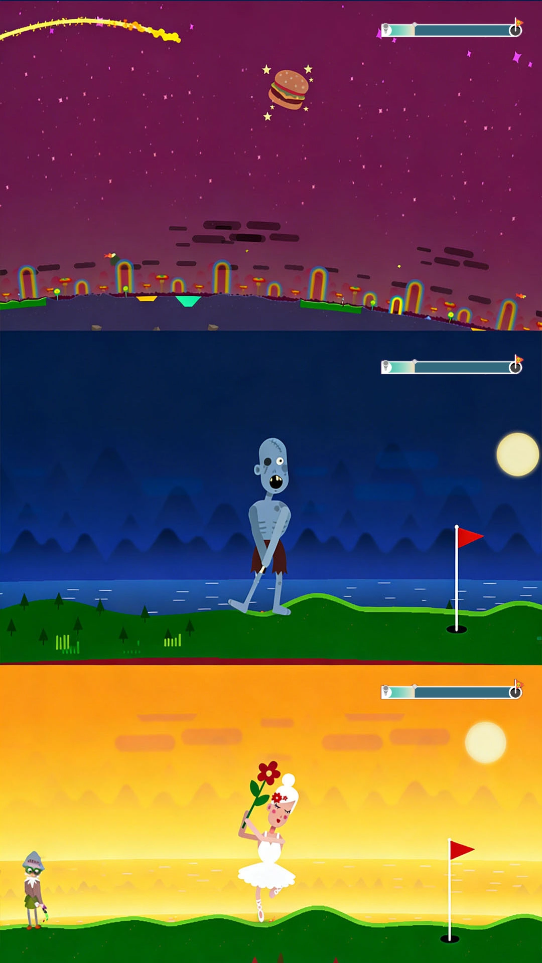 追求高尔夫球飞行距离的极致化,不必限定落点位置,把注意力放在利用各种互动元素来拉长飞行路径上,力求取得更远的成绩。