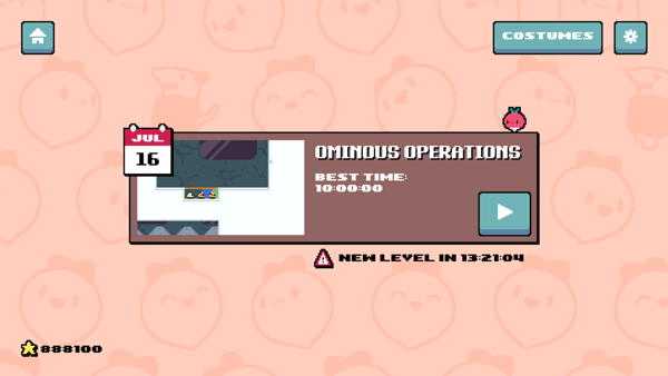 《每日萝卜爸爸》是一款可爱像素风格的闯关游戏,英文名为Daily Dadish。在游戏中,玩家操控萝卜爸爸开启冒险之旅,踏上寻找孩子的征程。在此过程里,玩家得操控萝卜爸爸避开诸多陷阱与障碍,助力它顺利通关。