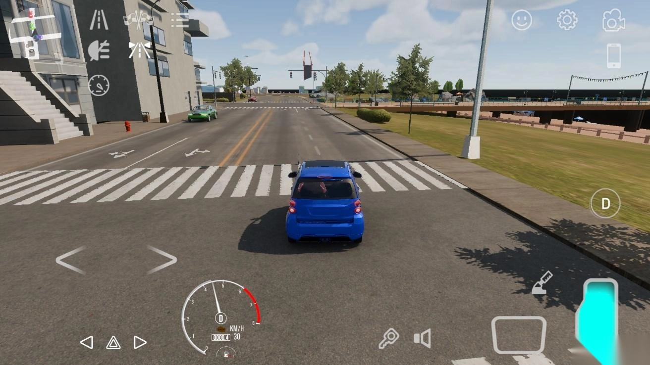 3、根据游戏按钮来控制汽车的行驶方向和速度,注意停车的位置。