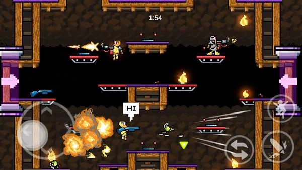 游戏设置具有挑战性的比赛机制,AI对手不断争夺高分让战斗充满变数,冒险过程有精心设计的难度曲线,武器系统支持多维度升级丰富战斗体验,采用经典像素艺术风格和精心调制的复古色彩,背景音乐与游戏节奏完美契合。