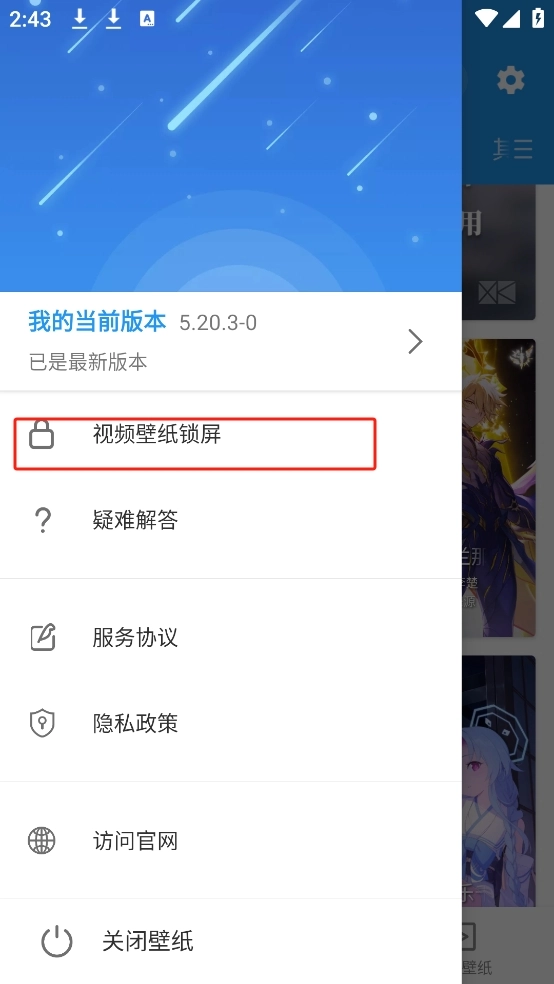 5、点击视频壁纸锁屏,安卓星空壁纸引擎后即可设置锁屏壁纸