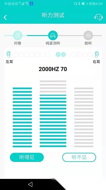 听力测试:涵盖左右耳总计16个频率点,自助完成测试大约仅需十分钟;