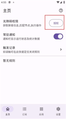 在本站下载“gkd跳过广告”软件并打开后,点击授予无障碍权限。