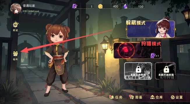 完成游戏通关任务后,回到游戏大厅,点击页面上的福利按钮。
