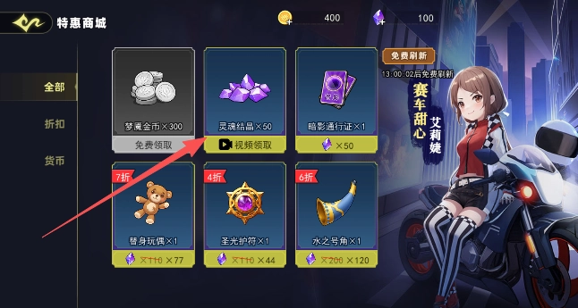 进入商城页面,点击视频领取购买灵魂结晶。