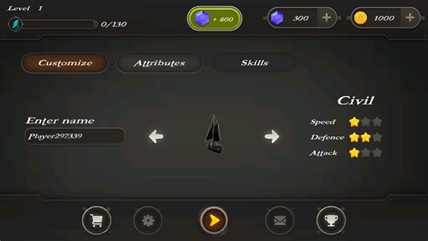 3、创建初始战舰,通过获取资源持续升级,提升防御与攻击力。