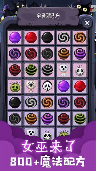 女巫来了手机版游戏拥有丰富的魔法与配方系统,操作简单易上手,只需点击就能制作糖果、解锁魔法。在制作糖果的过程中,你还能参与各类成就任务,完成任务后可获得荣誉、加成以及丰厚奖励,进而解锁更多配方。