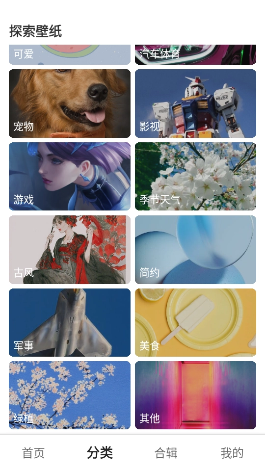 选择喜欢的壁纸类型点开,就会为你呈现出各种壁纸。
