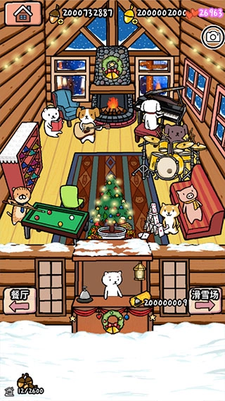 点击左侧箭头进入山庄,这里能为需要休憩的动物们提供一处惬意温暖的空间;点击前台,即可邀请更多动物前来滑雪场。