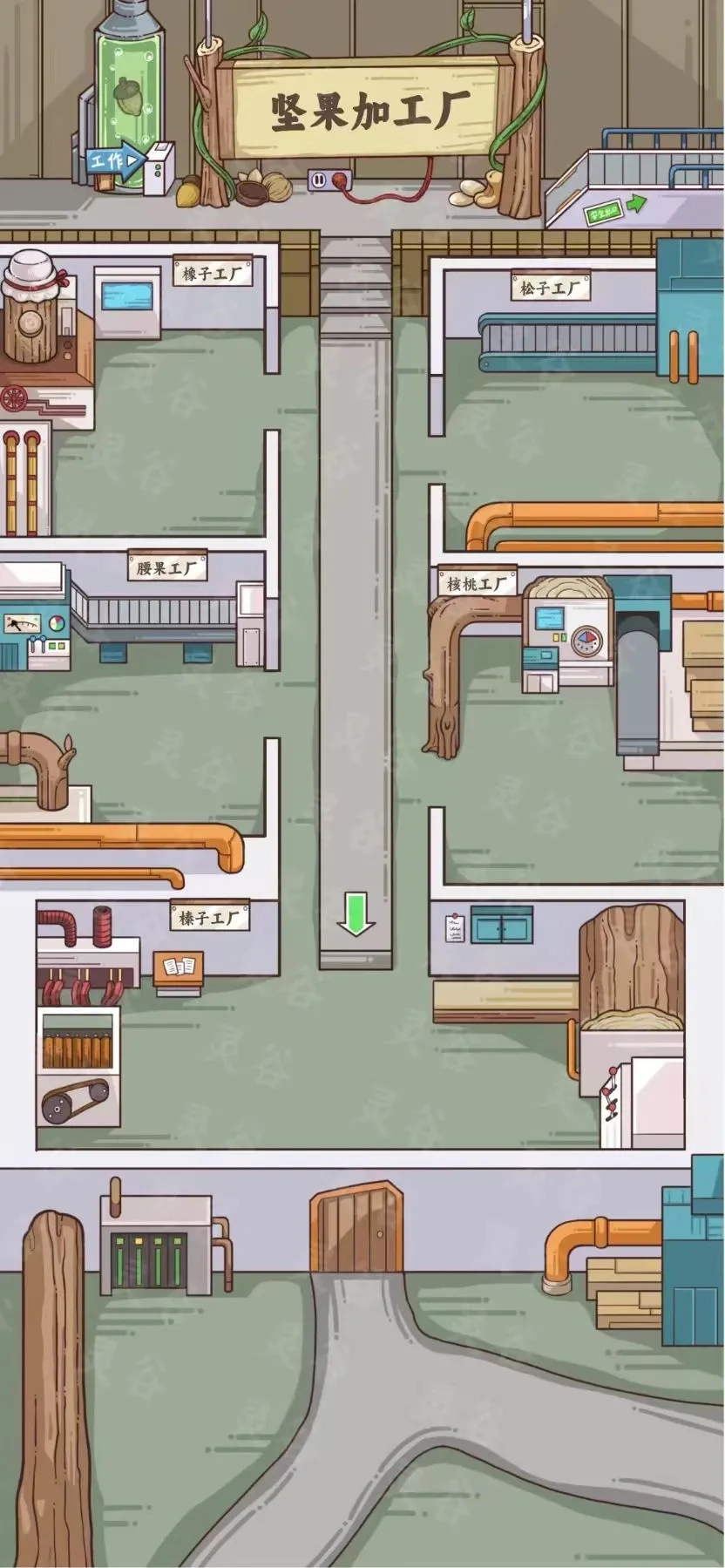 穿梭探秘:玩家能够在各式科技工厂间穿梭往来,对各类坚果进行加工处理,还能在小径之上悠闲漫步。
