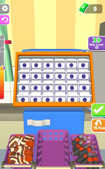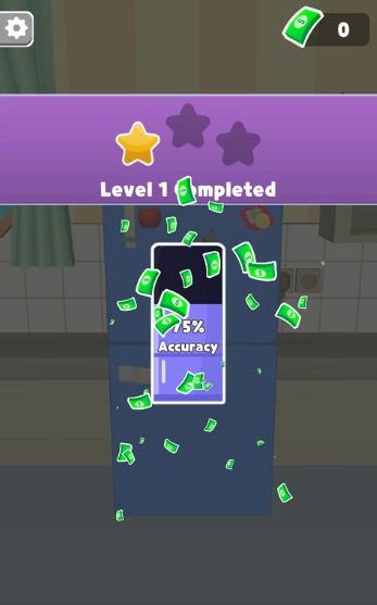最后,成功将冰箱的储物柜填满就能通关,系统会依据获得的星星数量奖励钞票。