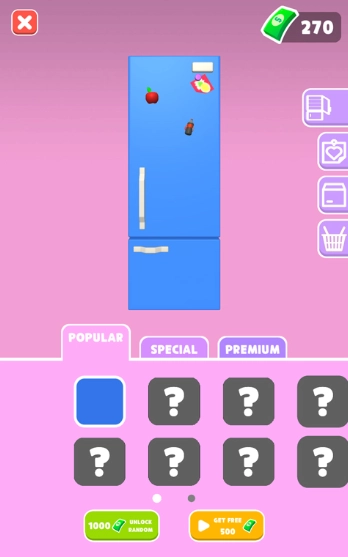 可以通过关卡奖励解锁各式各样的冰箱款式,还能利用贴纸来进行个性化的装饰