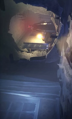 打开盖子,把拉杆向下拉动,从左侧打开门就能抵达此处。这里虽然有一扇门,但从这一侧是无法开启的。完成第一关的大门逃脱后,左边的阶梯处会降下一块木板,借助这块木板就能前往胖修女所在的位置了。