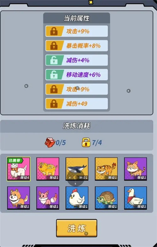 宠物拥有的属性类别包括:攻击、减伤、暴击概率、移动速度、防御。每只宠物都具备不同的属性副条,宠物列表里全部宠物的属性总和,会叠加到出战人物身上。