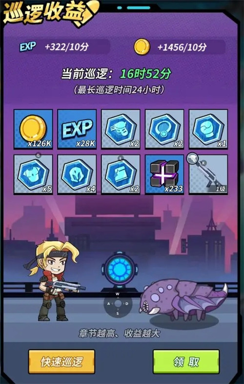 巡逻里面还有快速巡逻,这可是收益非常高的功能,如果体力快满了但没有时间玩,不妨试一试快速巡逻。