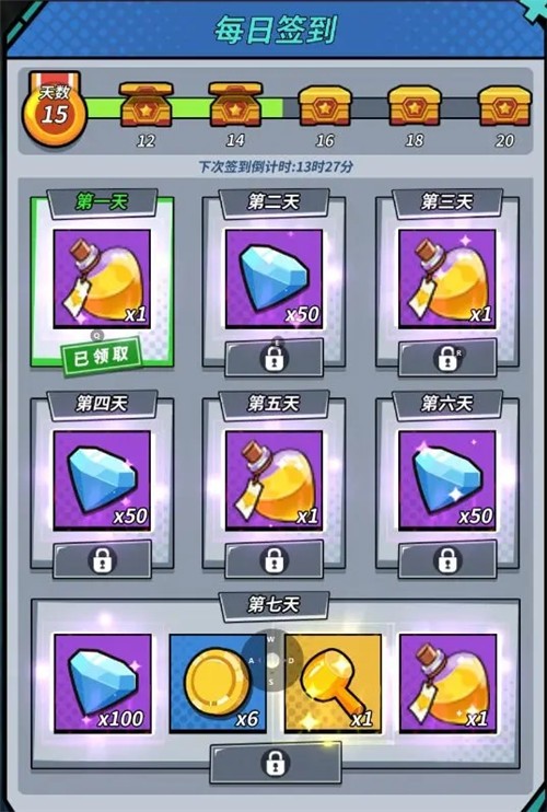 每天可以领取一次不同的游戏道具