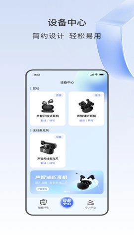 声智软件的设备中心具备多国语言支持功能,可对各类智能设备的连接与操作进行简易设置,助力用户迅速熟悉声智灵耳、领夹麦克风等设备的使用方式。
