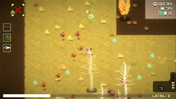 击败敌人后会掉落经验宝石,拾取宝石能提升等级。