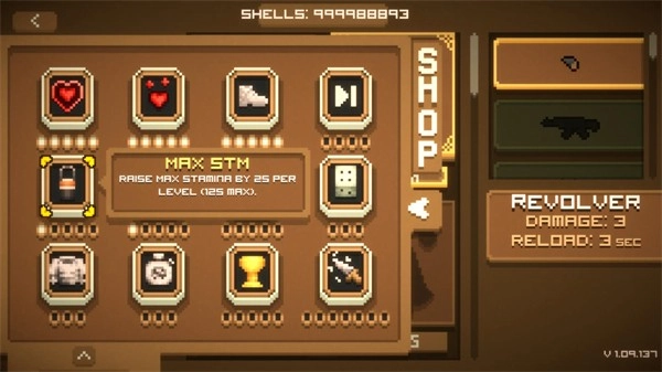 在选人界面点击左侧的“SHOP”能够提升角色属性。