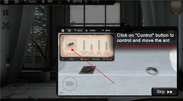 点击控制按钮可以用来控制蚂蚁。