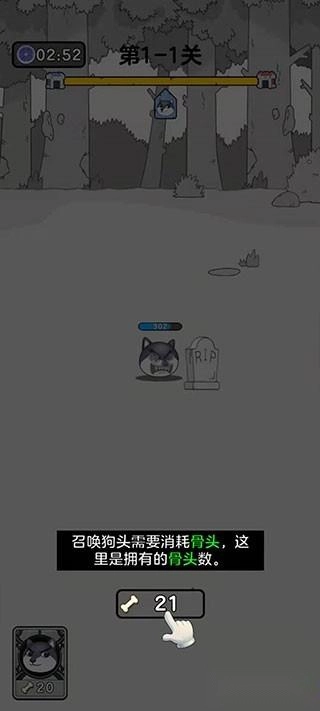 游戏正下方有个能自由操控的狗头,玩家只要点击它就能马上让其出战。