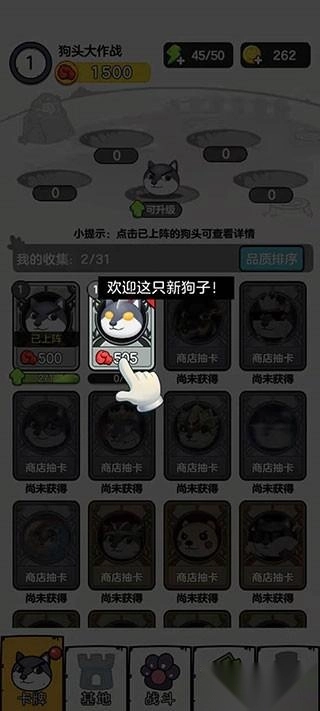 正如大家所看到的,这款游戏采用卡牌形式来进行排兵布阵,玩家能够收集各式各样的狗子。