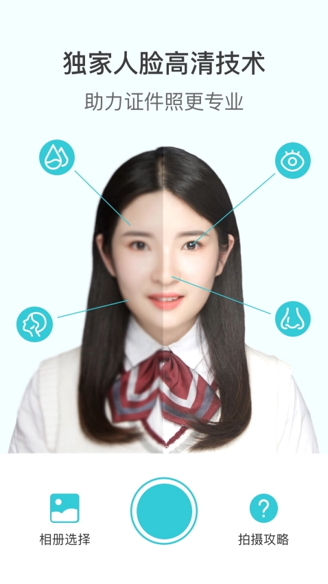 这款产品的拍摄效果与画质表现十分出色,它整合了高清专业的拍摄功能,同时运用先进的人脸高清技术,确保证件照中的人像清晰自然、细节呈现得十分分明。