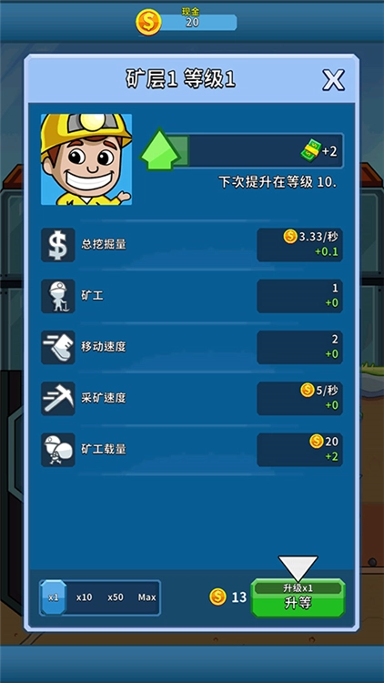 《偷懒的矿业大亨》中文版是一款充满魅力的休闲卡通风格放置模拟游戏。在游戏中,玩家将扮演矿场老板,目标是打造一个庞大的矿业帝国。从建设矿山、雇佣工人开始资源生产,到逐步拓展业务获取利润,每一个环节都融合了策略性与趣味性。游戏初期,玩家需要手动点击来推动业务发展,积累一定初始资金后,就能招募专业的管理人员,让矿山采集实现自动化运作。值得一提的是,每位矿工都拥有独特的技能,通过合理的升级强化,能够显著提高采集效率。除此之外,升级挖掘设备、聘请监工和矿山经理、使用强力道具等操作,都能有效加快矿业的运营节奏。更贴心的是,游戏了离线收益系统,即使玩家不在线,也能持续获得金币收入,助力快速建立竞争优势,尽情体验从矿场小老板逐步成长为矿业大亨的精彩过程。
