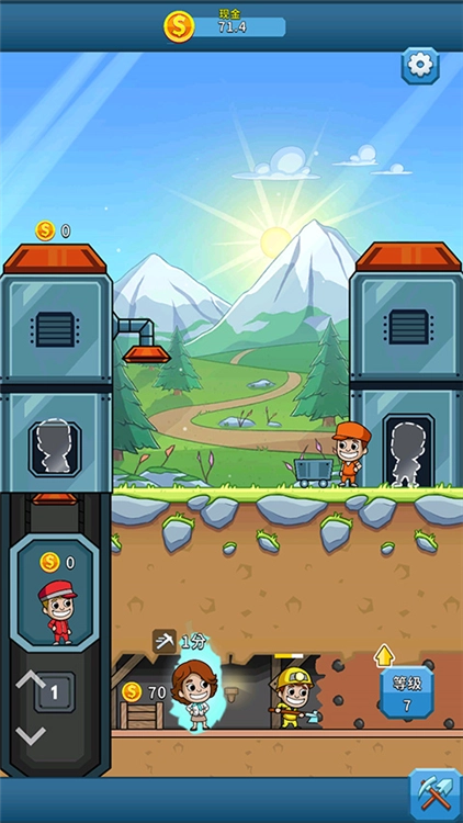 整体采用休闲卡通的风格来打造,画面的色彩十分鲜艳明快,其中的各类形象也都显得俏皮可爱。不管是挖矿的矿工、运送矿石的矿车,还是矿山里各式各样的设施,全都是以卡通化的模样来呈现的。