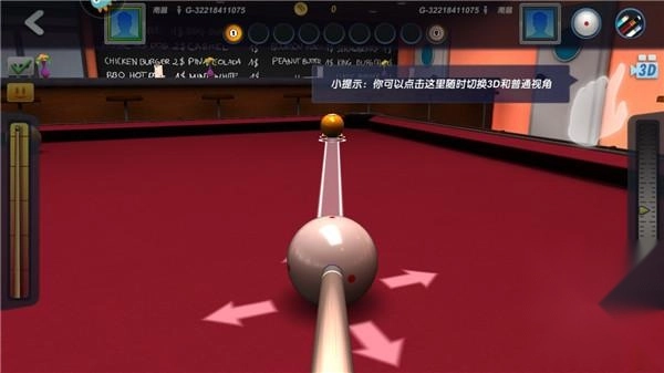 调整击球的角度与力度,使其达到合适的状态,游戏规则和真实台球相近,只要把最后一颗球成功打入球洞,即可赢得胜利。