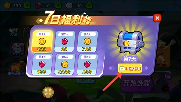 记得关注【7日福利】活动哦,每天登录都能领取对应的奖励,像金币、钻石这些都有;到了第7天,点击【双倍领取】就能拿到更多资源啦。
