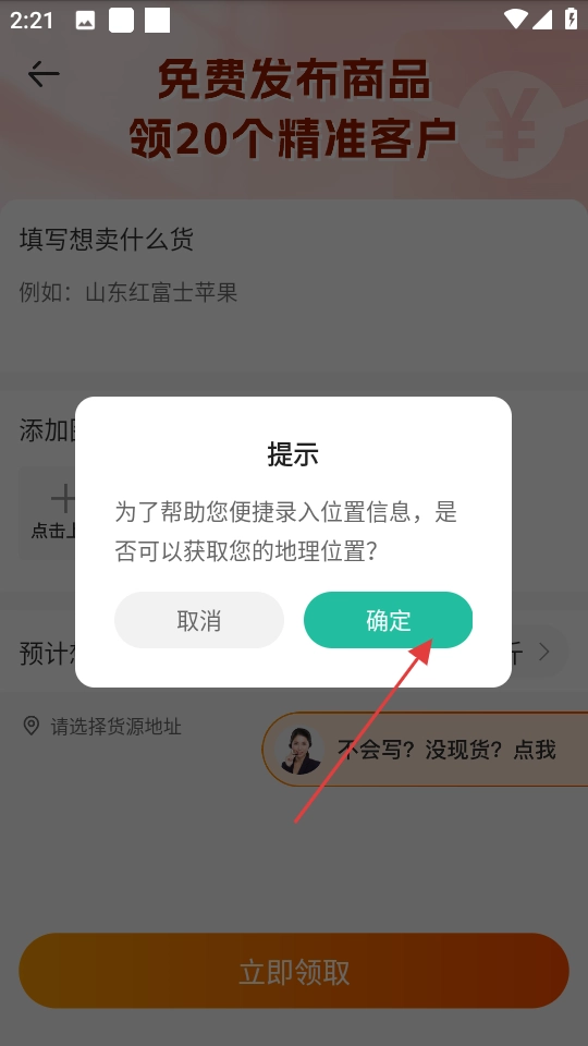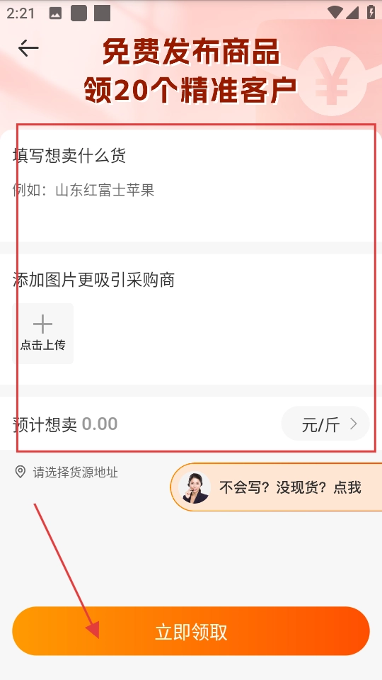 填写商品信息,点击立即领取完成发布。