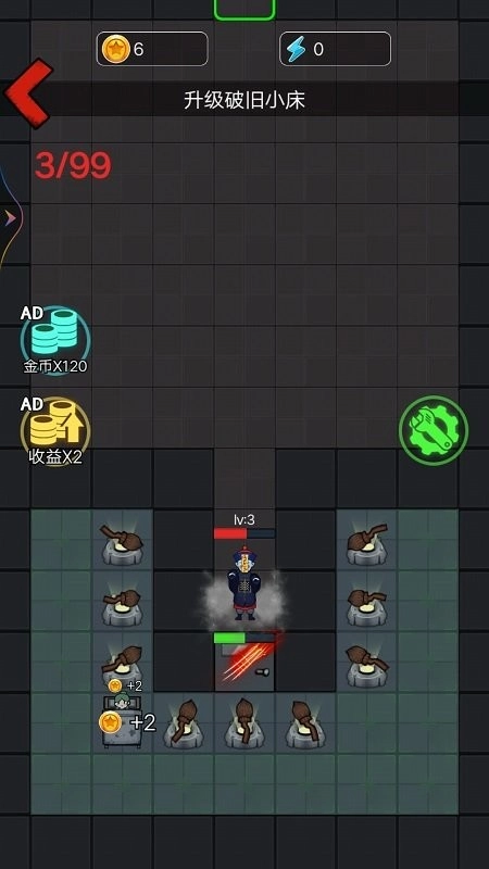 全新的双人对战玩法为玩家带来了更多趣味十足的竞技模式,玩家开局就能自由选择房间,只需找到小床让小姐姐躺上去,就能产出大量金币,进而解锁并放置升级更多攻防装置!