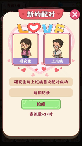 2、通过升级来解锁各类设施,对婚介所的内饰进行提升优化,并进一步扩大婚介所的规模!