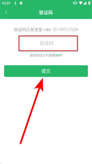把收到的短信验证码输入到验证码框里,再点击提交按钮,就能完成账号注册了。