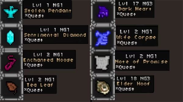 游戏里存在各式各样的任务道具,要是不把它们交给NPC,而是扔进篝火里,就能转化成武器。并且每一种道具都只能转化为特定的某一种武器,所以这就要求玩家得有策略地去收集和使用这些道具。