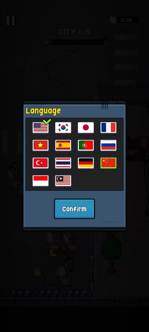2、进入语言设置界面,选择中国国旗图标,将系统语言切换为中文,以便更好地进行游戏。