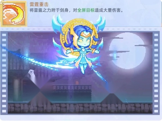 雷霆猛击:把雷霆的力量附着在剑刃上,纵身跃起后猛力砸向地面,使整个屏幕范围内的目标触电(具体效果请以游戏内实际呈现为准)
