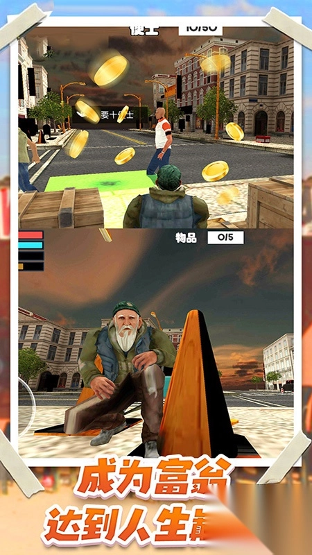 1、游戏的核心玩法围绕“生存”展开。玩家必须通过乞讨、拾荒和打零工等方式来获得食物、金钱以及庇护所,以维持基本的生存需求。