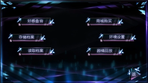 接下来我们可以点击右上角的菜单按钮,从中选择存储档案、读取档案、好感查询、商城购买等多种功能选项。