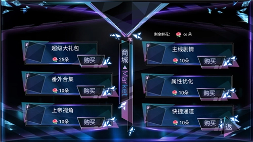 因为这款游戏已经实现了无限鲜花功能,所以我们能够直接进入鲜花商城,购买超级大礼包、番外合集以及主线剧情等相关内容。