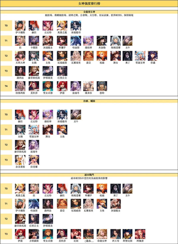3、女神T级/强度排行说明