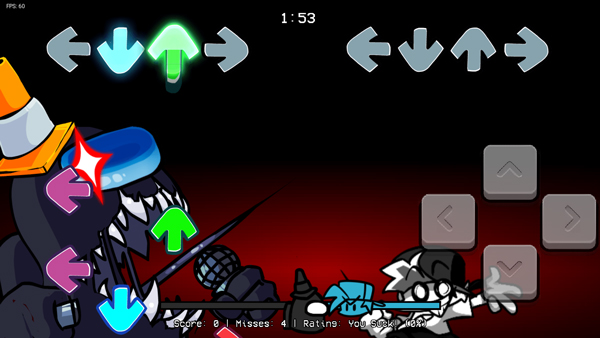 同时,游戏玩法极为简单,极易上手。音乐对决开启后,屏幕下方会陆续升起方向键,当下方箭头与角色上方的固定箭头重合时,玩家需在打击键上按下对应的方向键。成功按下的次数越多,得分也就越高。