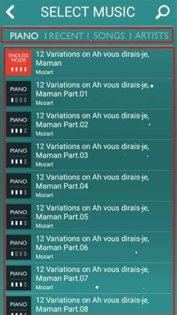 提供搜索功能,可直接搜索感兴趣的曲目