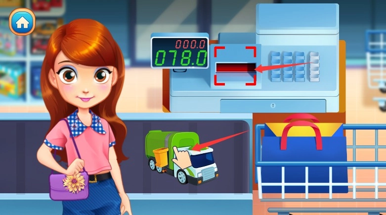 把挑选好的所有玩具拖到收银台那里,用扫码的方式完成结账就能拿到收益了。