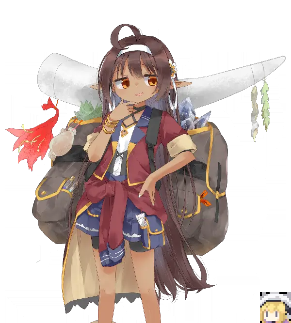 虽出身精灵之村,却因不愿归家,在魔族出没的区域过着流浪生活,靠与冒险者交易维持生计。因此她的行囊配备了野外露营所需的全套装备,背负着足有自身两三倍大的背包,她本人则穿着便于行动的冒险者装束。