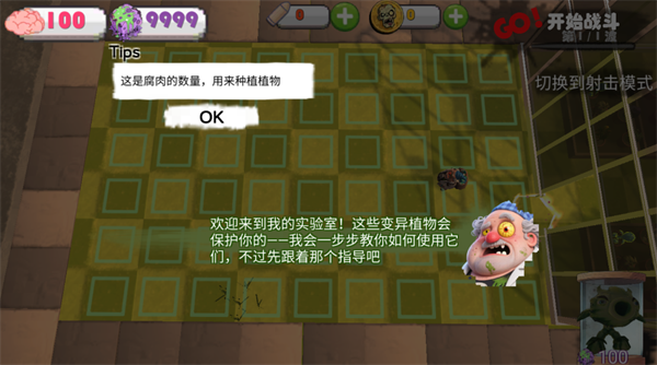 在新手引导中,你会了解到“腐肉”是种植植物的核心资源,而“大脑”则是你的生命值。开局时腐肉资源有限,必须精打细算,优先种植关键防御单位。