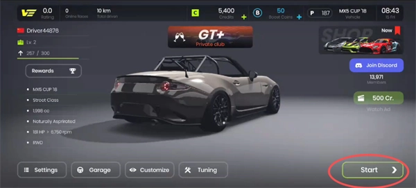 打开真实模拟驾驶游戏后点击右下角的start